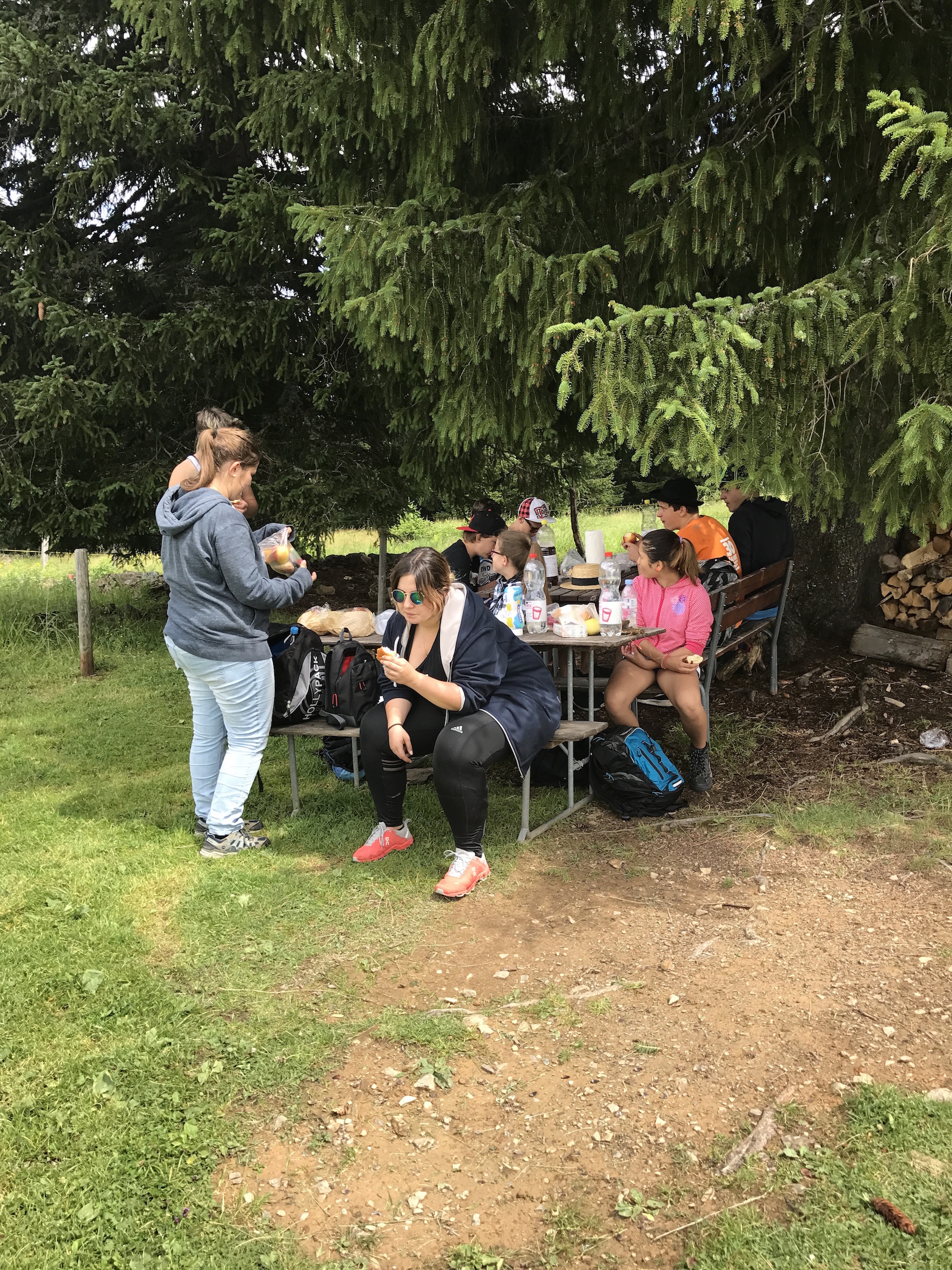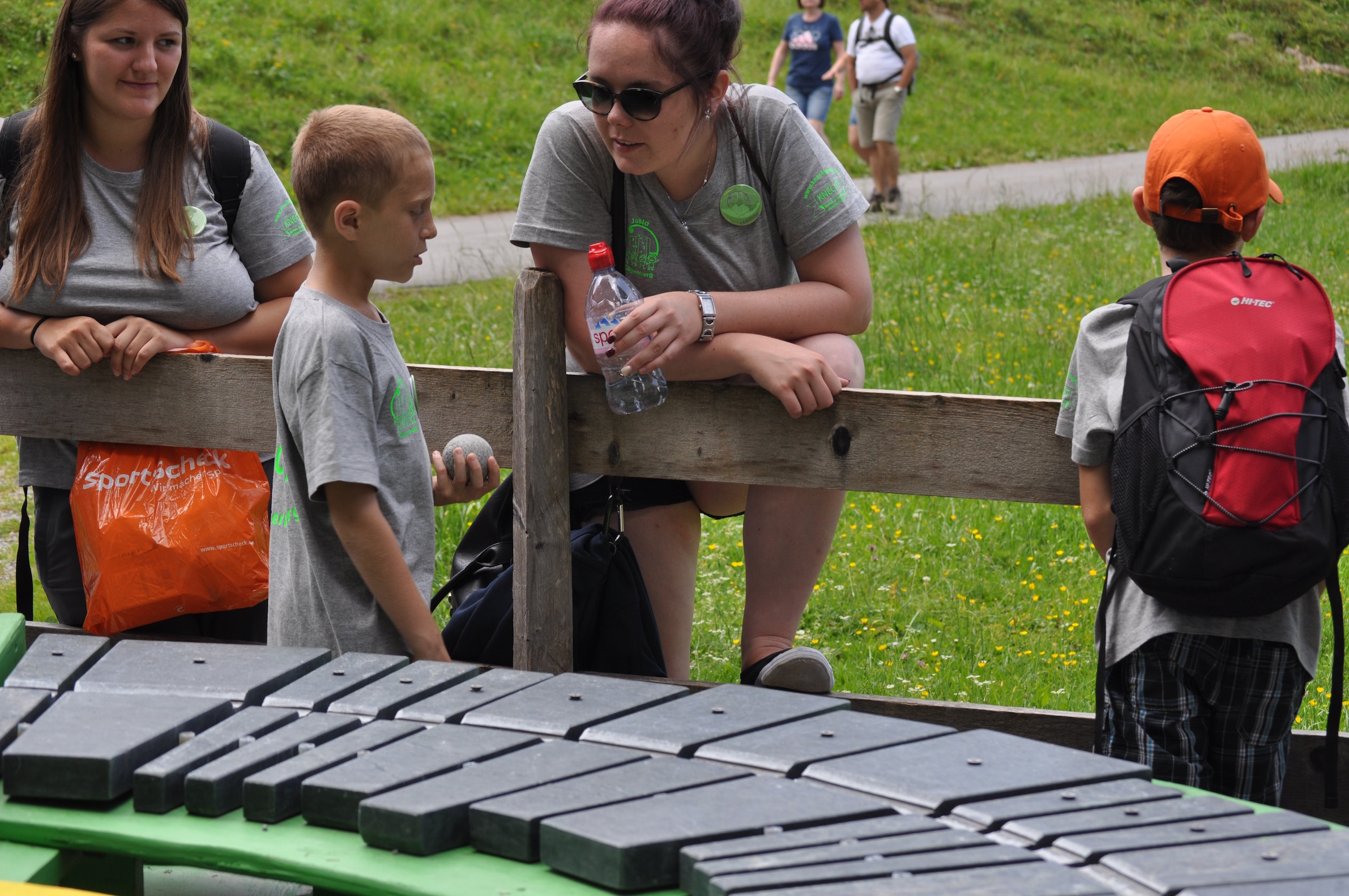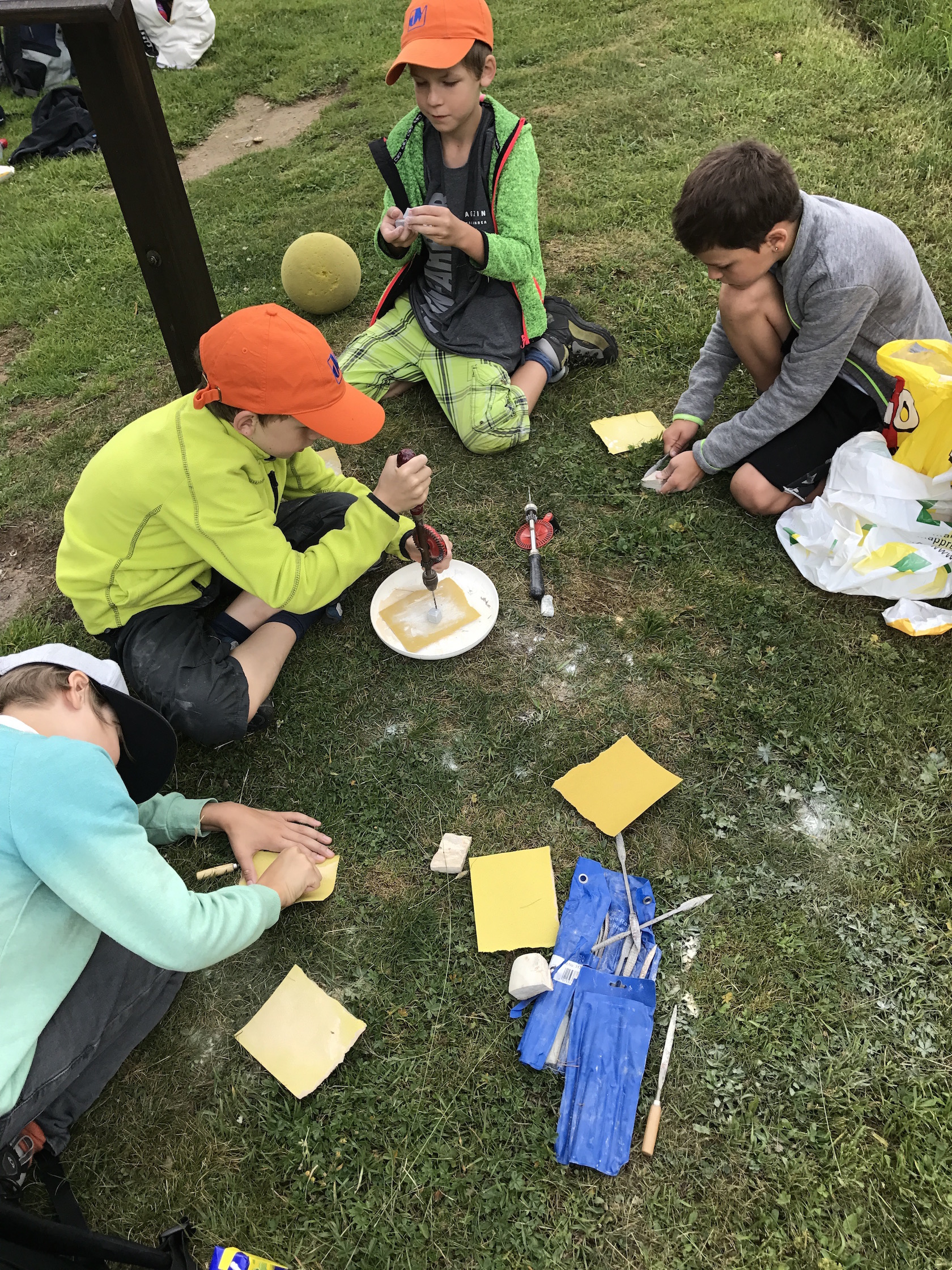 Damit auch die nicht Profis unter uns das Wandererlebnis geniessen konnte, wurde die Gruppe dann aufgeteilt und ging verschiedene Wege. Ein kurzer halt bei der Bergstation um das riesen Trampolin zu geniessen und schon ging es weiter in Richtung Feuerstelle. Dort wurden standesgemäss lodernde Feuer entfacht, damit wir unsere Klöpfer später auch bräteln konnten. Die Kids genossen die Wartezeit mit Frisbee spielen und Speckstein bearbeiten. Das eine oder andere tolle Schmuckstück wurde so gefertigt.