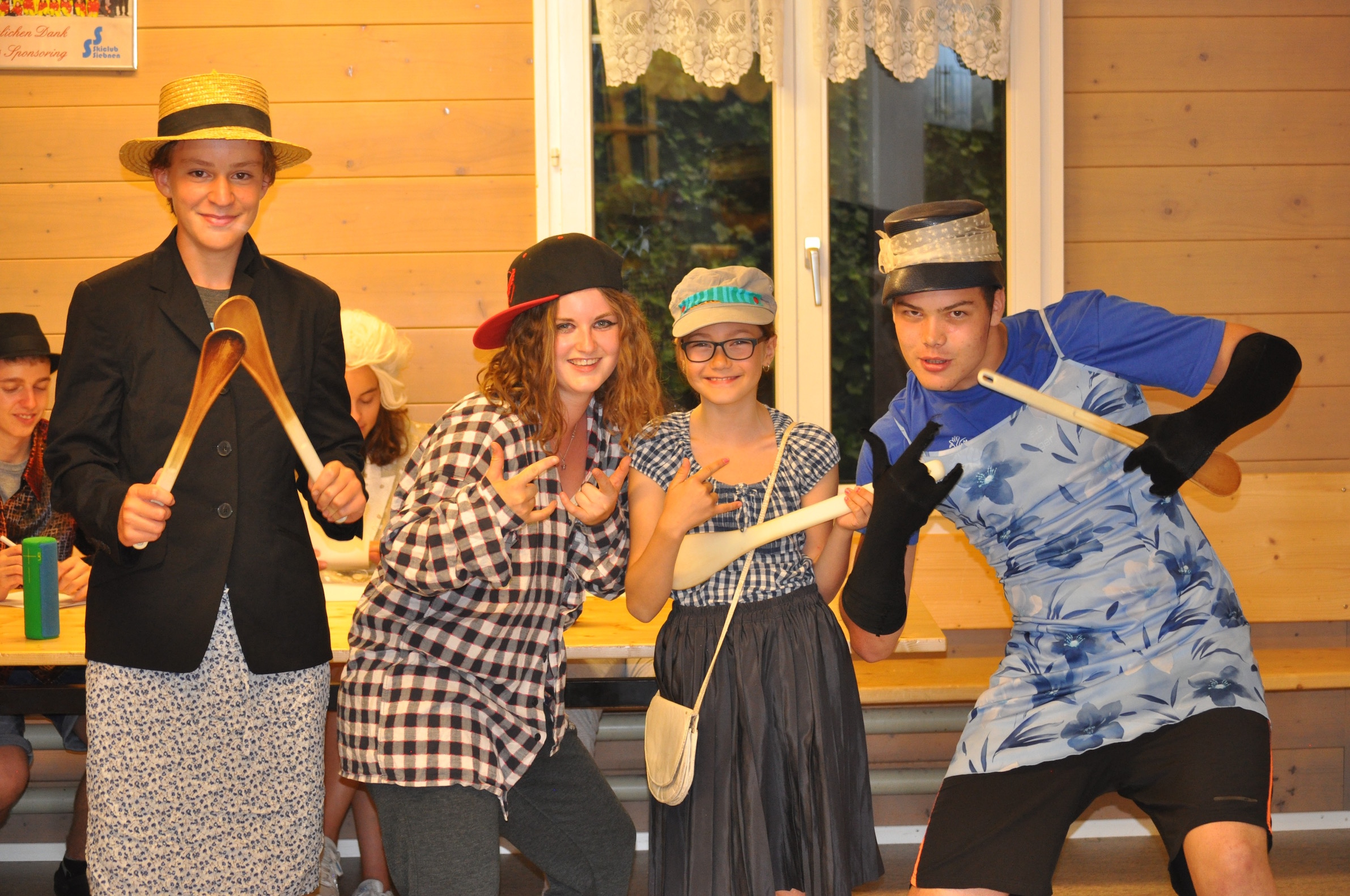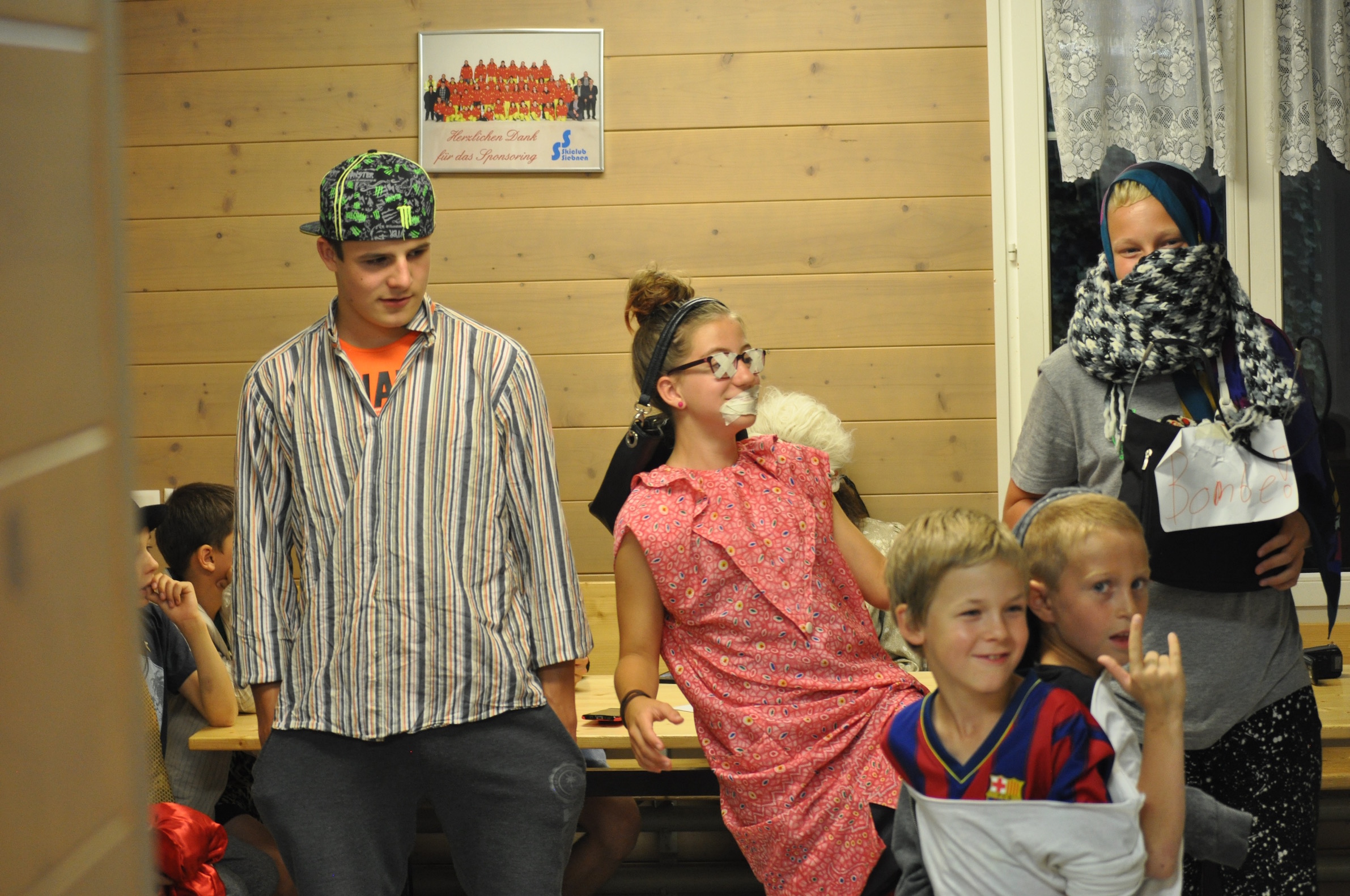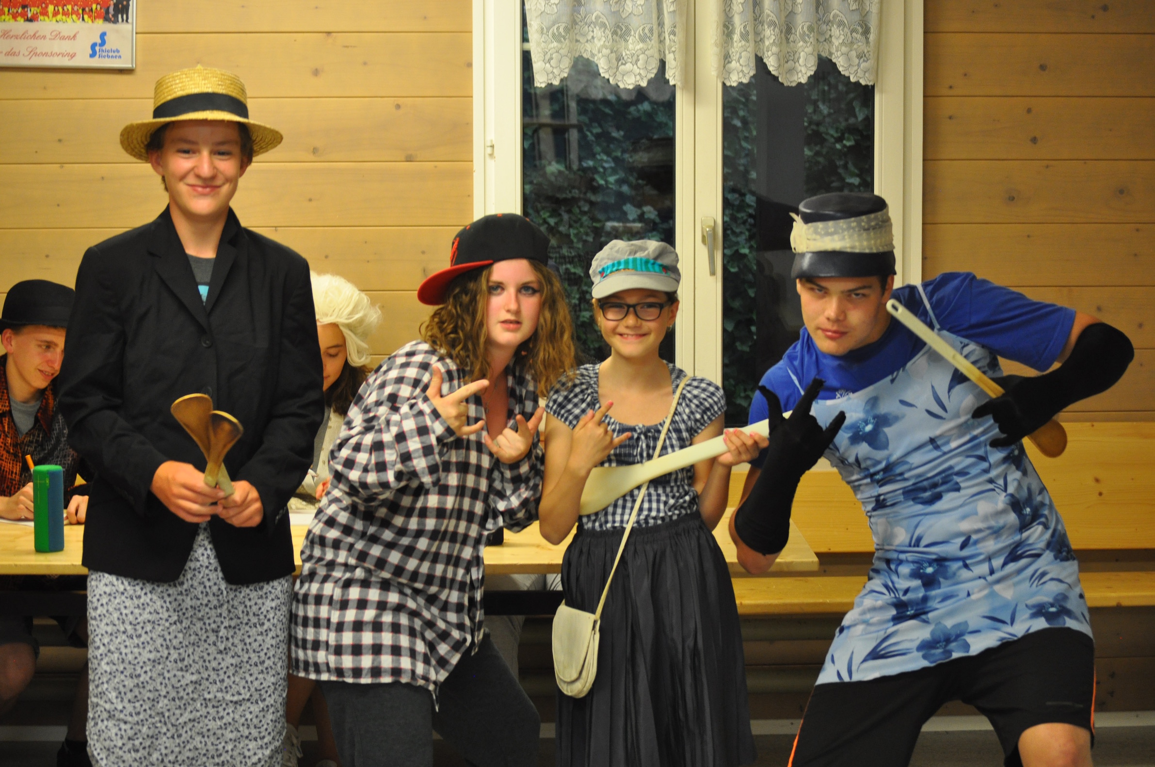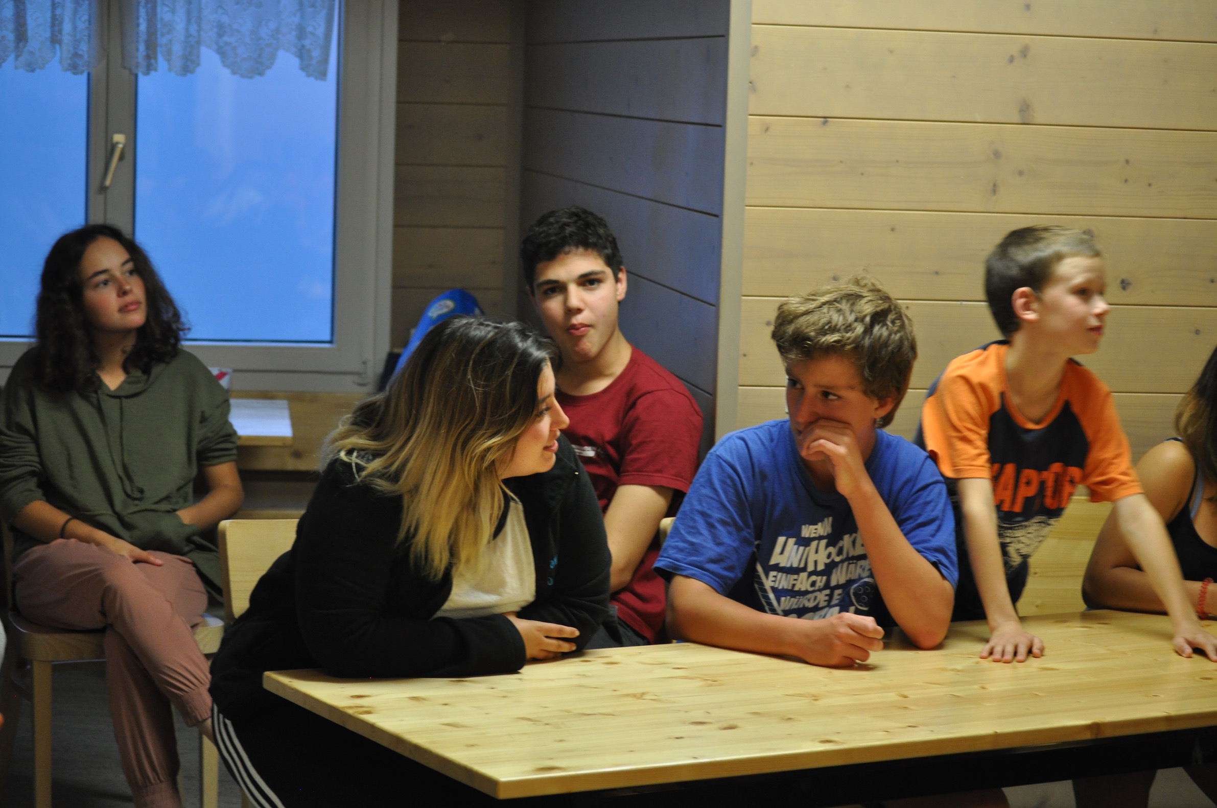 Einer kurzen Verschnaufpause folgte das Abendprogramm. "5 gegen 5, gegen 5" wurde gespielt und Tageschefin und Lagerleiterin Fabienne wurde als adäquater Ersatz für Sven Epiney in der Rolle als Gameshowmaster ersetzt. Knifflige Fragen führten zu regen Disskussionen in den Teams, und für einmal war es wichtiger sich in die Köpfe anderer Menschen zu denken, als immer zu 100% richtig zu liegen. Was hättet ihr gesagt, wenn ihr Dinge gefragt worden wärt, wie "Nenne uns die Länder mit der grössten Bevölkerungsanzahl", "Die beliebtesten Automarken" oder "Einen Gegenstand den man für den Bergbau benötigt"? Die Antworten unserer Teams jedenfalls, waren genau so oft goldrichtig, wie komplett daneben. Fest steht, bei einer Rasur braucht man viele Dinge, ein KÜCHENmesser ist aber eher ungewöhnlich.