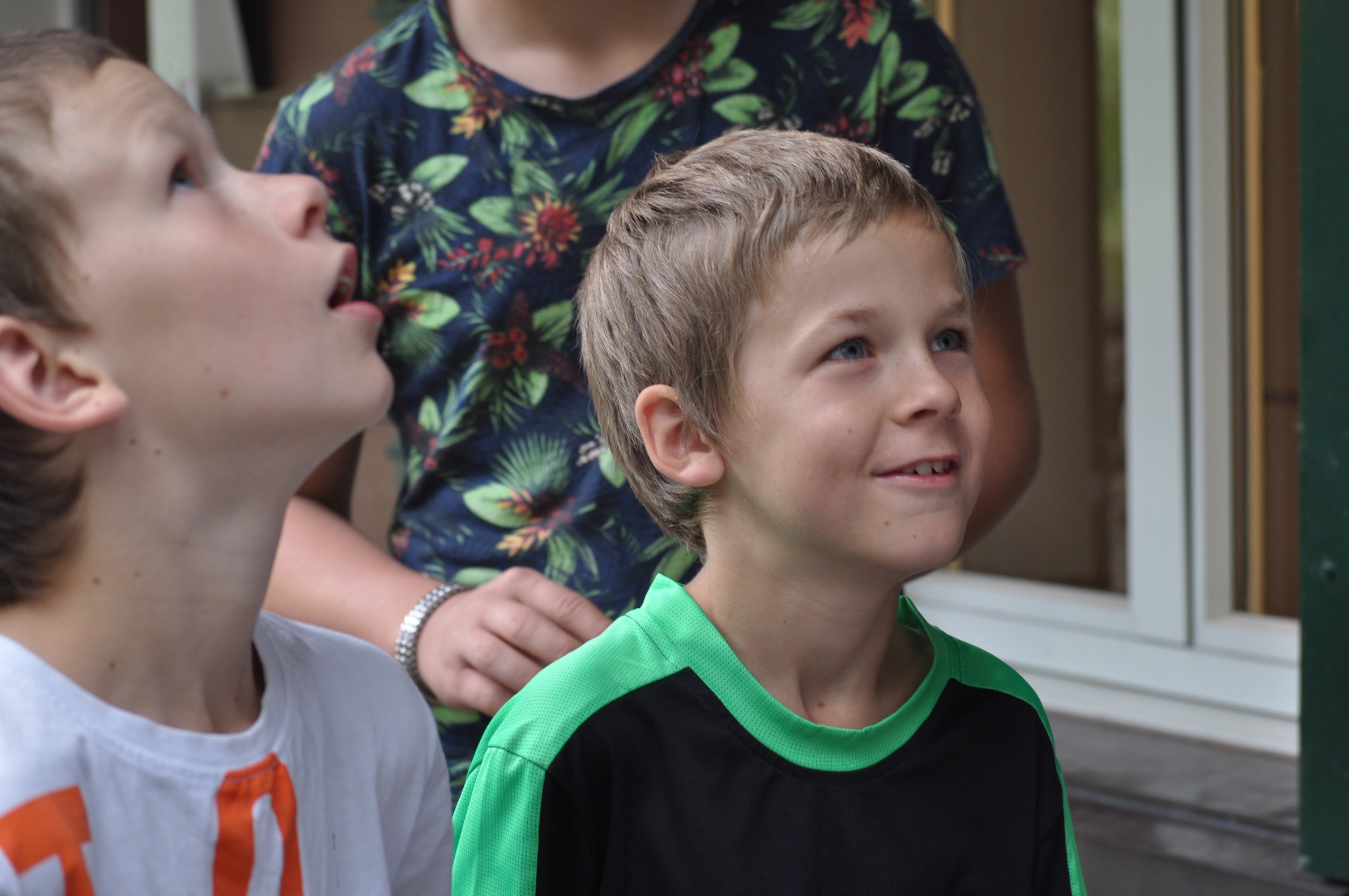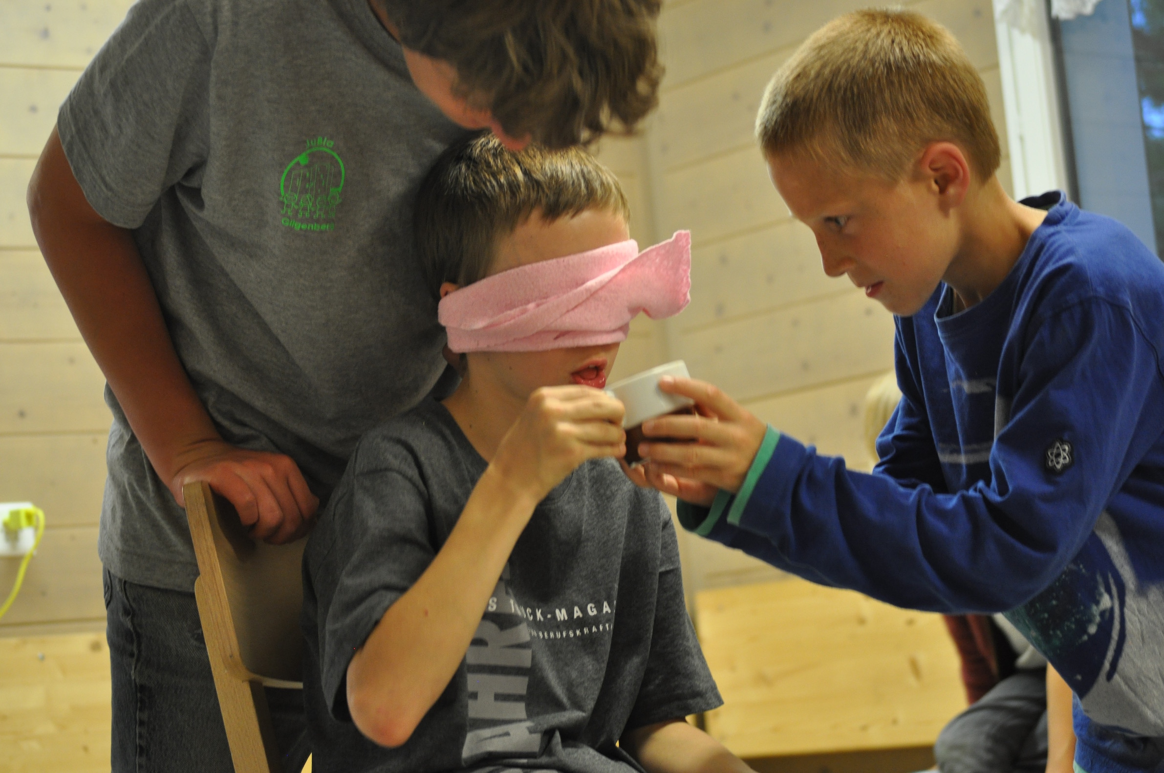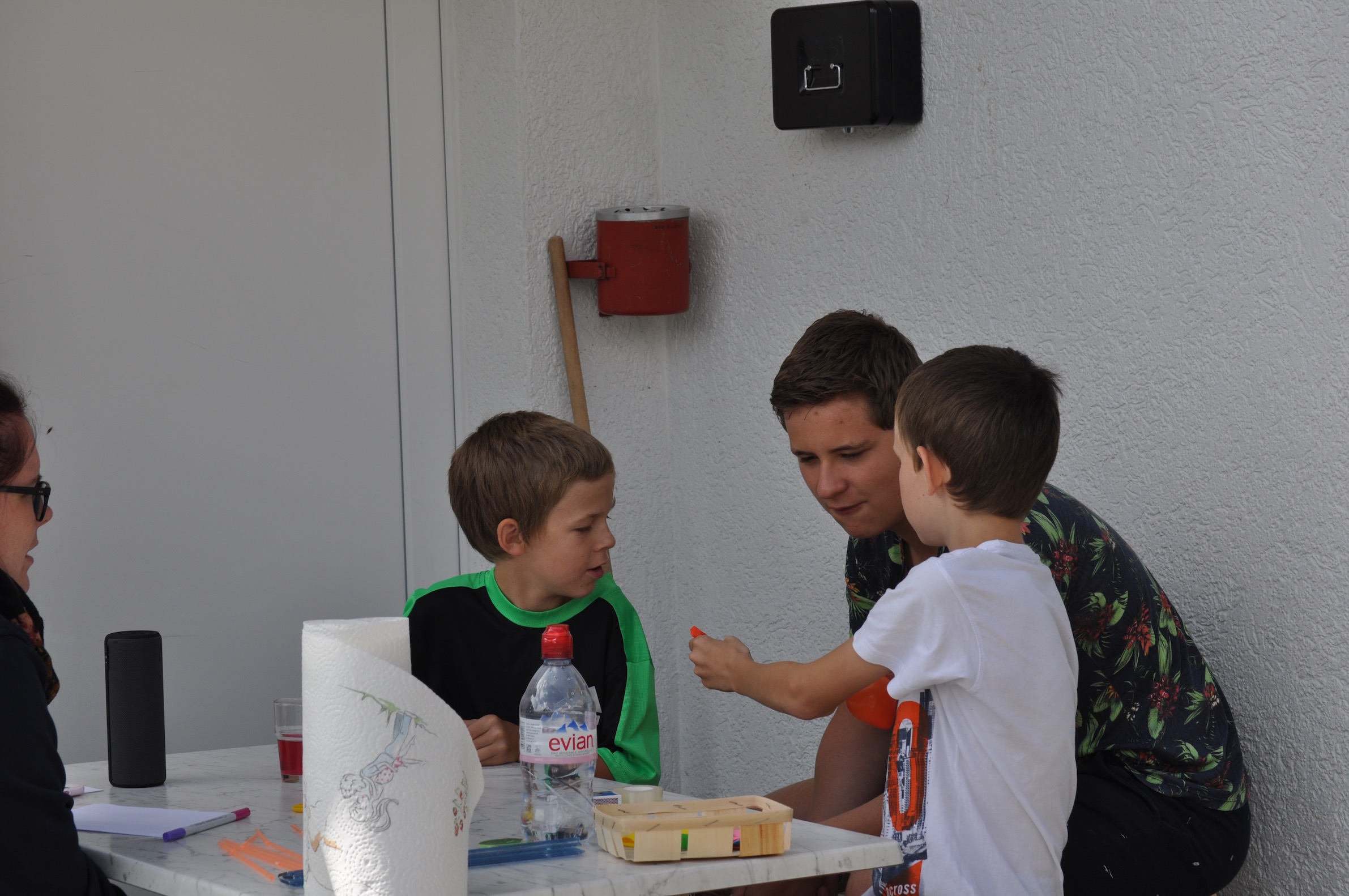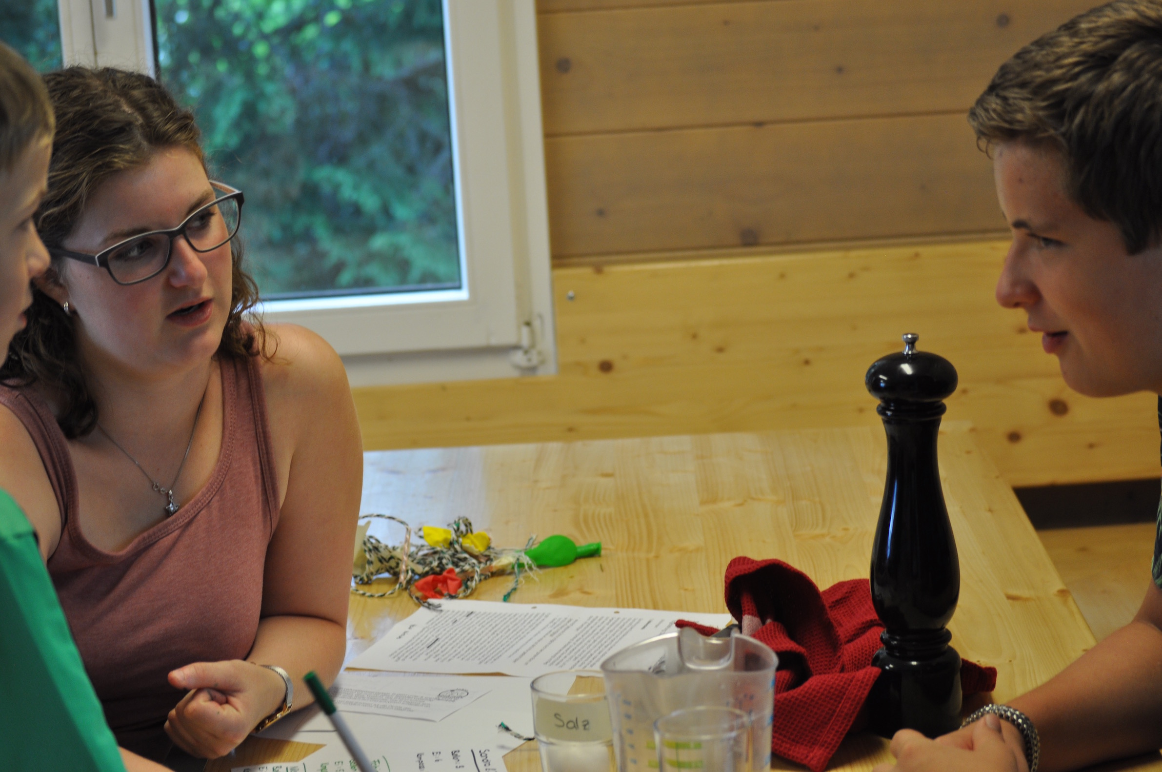 Sonntagmorgen, die erste Nacht ist überstanden! Als Olivia Einstein, die Grosscousine der Enkelin, der Tante des Onkels von Albert Einstein in die Zimmer und Zelte schreitet um Tagwacht zu machen, wird sie bereits von vielen hellwachen Augen angestarrt. Nachdem beim Frühstück ausgedehnt über die einfachen Dinge des Lebens, wie zum Beispiel die Relativitätstheorie diskutiert wurde, konnten unsere Kids gleich selbst in die Forscherrolle schlüpfen. Diverse Experimente wurden in einem Parcours erledigt und nun wissen alle wie man ein Ei gerade hinstellen kann oder wie man bei einem Ballon die Luft entleert, ohne dass dieser Beschädigt wird. Die Experimentierrunde wurde mit einer köstlichen Hot Dog- Party beendet.