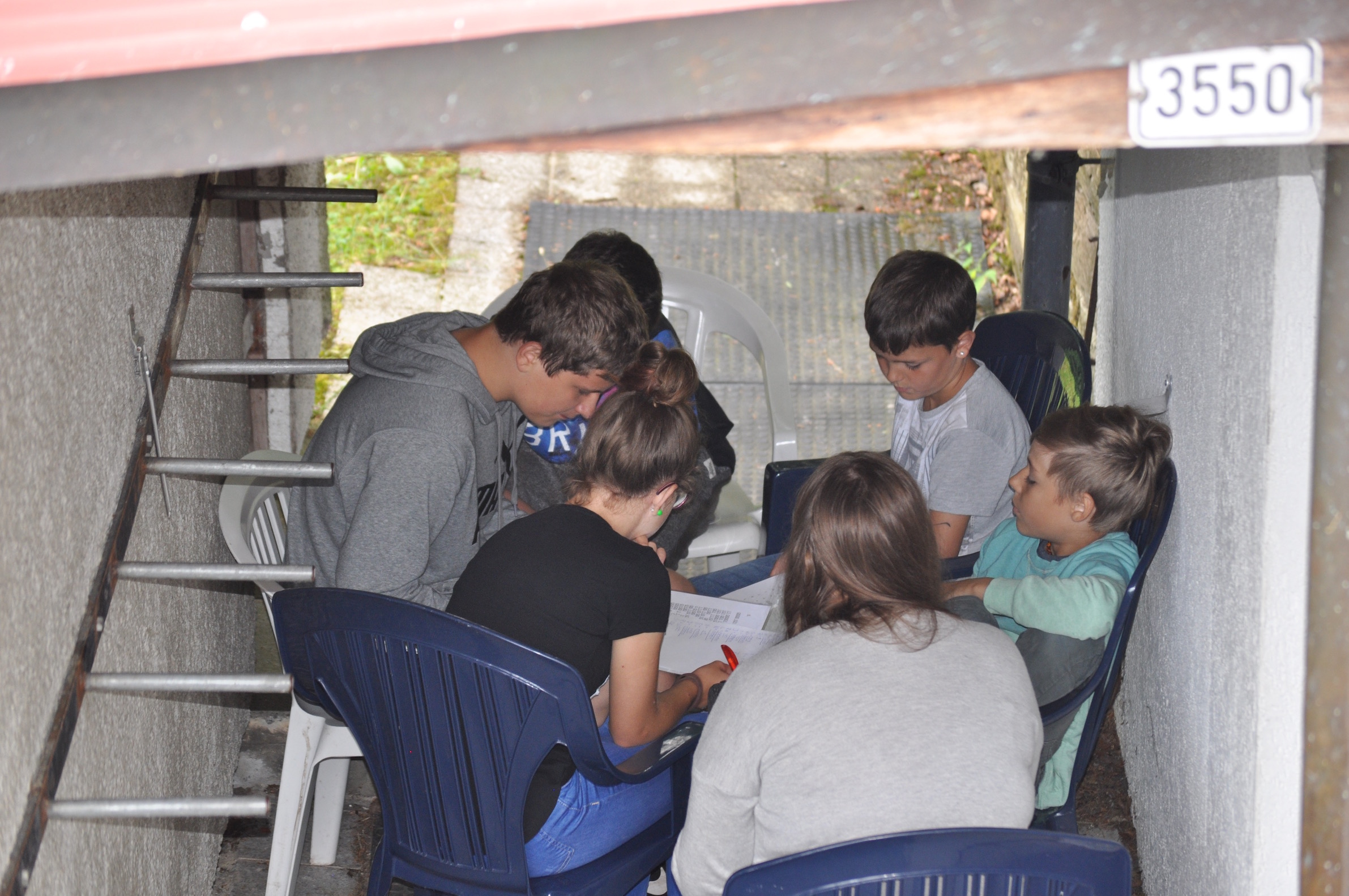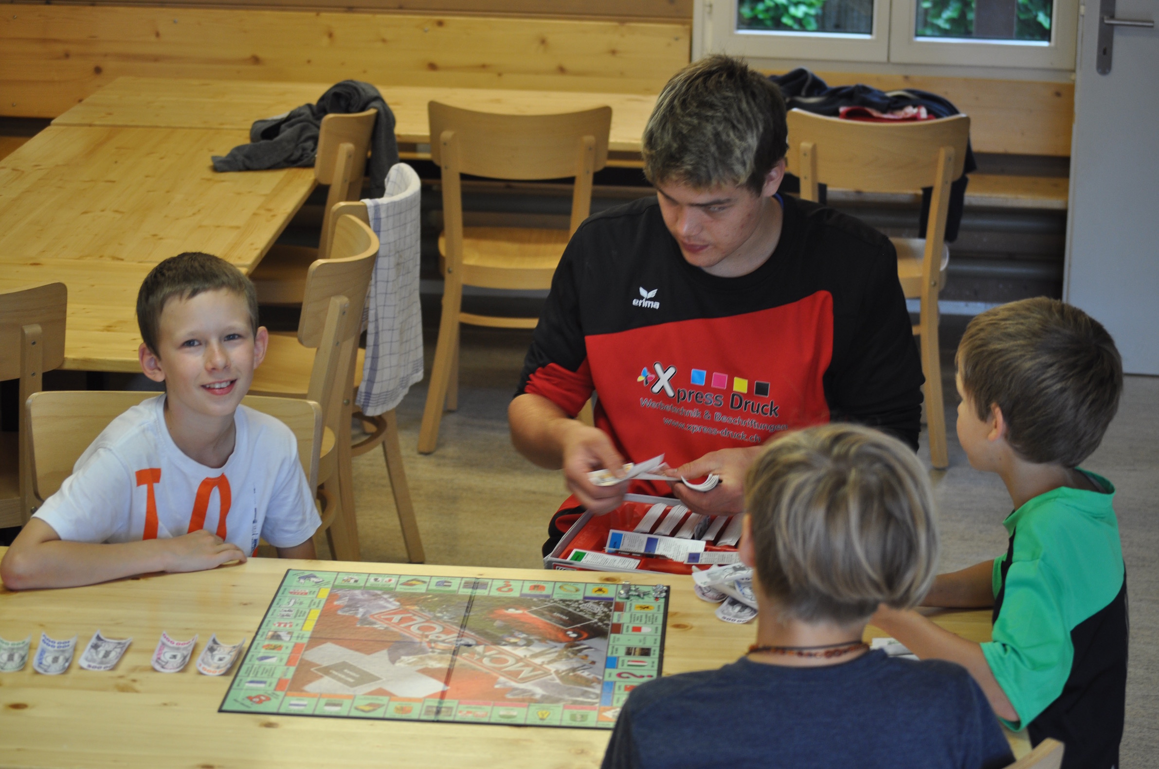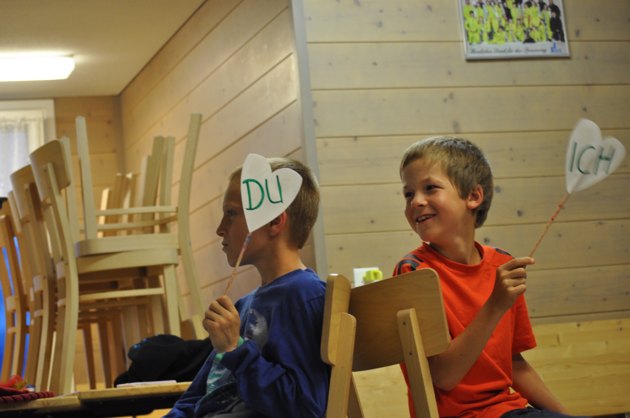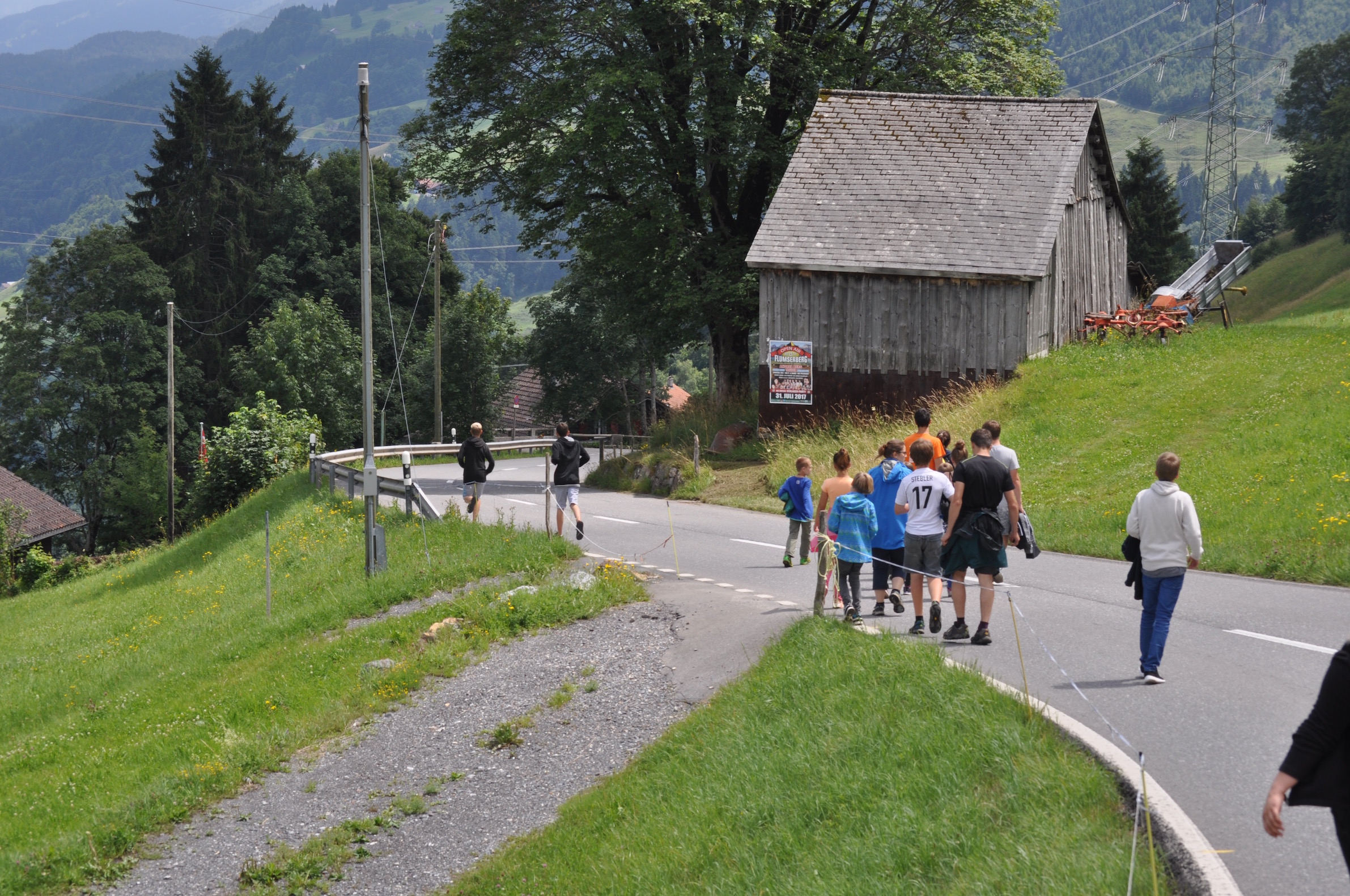 Letzte Runde Frühstück, letzte Runde Küchendienst, letzte Runde Programmstart. Während die Leiter putzten was das Zeug hält und die Grossen Kisten schleppten, spielten die Jüngeren ein Geografiespiel, bei dem sie Orte der Schweiz auf einer Landkarte eintragen mussten. Wusstet ihr zum Beispiel, dass Brienz im JuBlaversum am Bielersee liegt, und Basel neu zum Kanton Aargau gehört? Nicht? Wir auch nicht aber davon waren einige steif und fest überzeugt. Nun steht fest das wir in Zukunft jede Gruppenstude einen Ort der Schweiz und dessen Lage lernen müssen. Die grossen Jungs beschäftigten sich selber mit bravour und so konnten wir nach einem kleinen Lunch schon bald losfahren.
