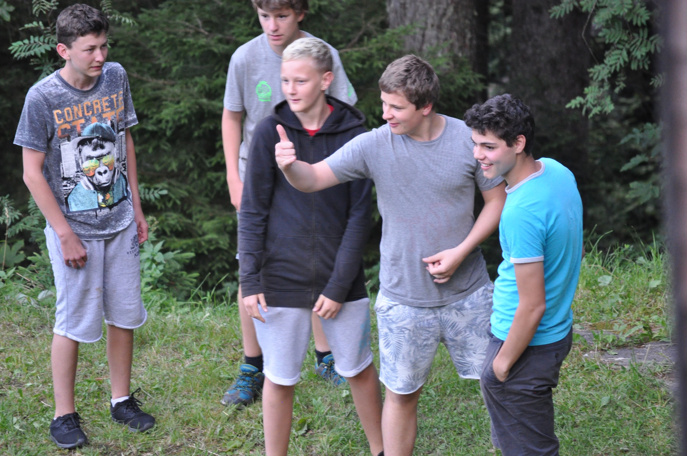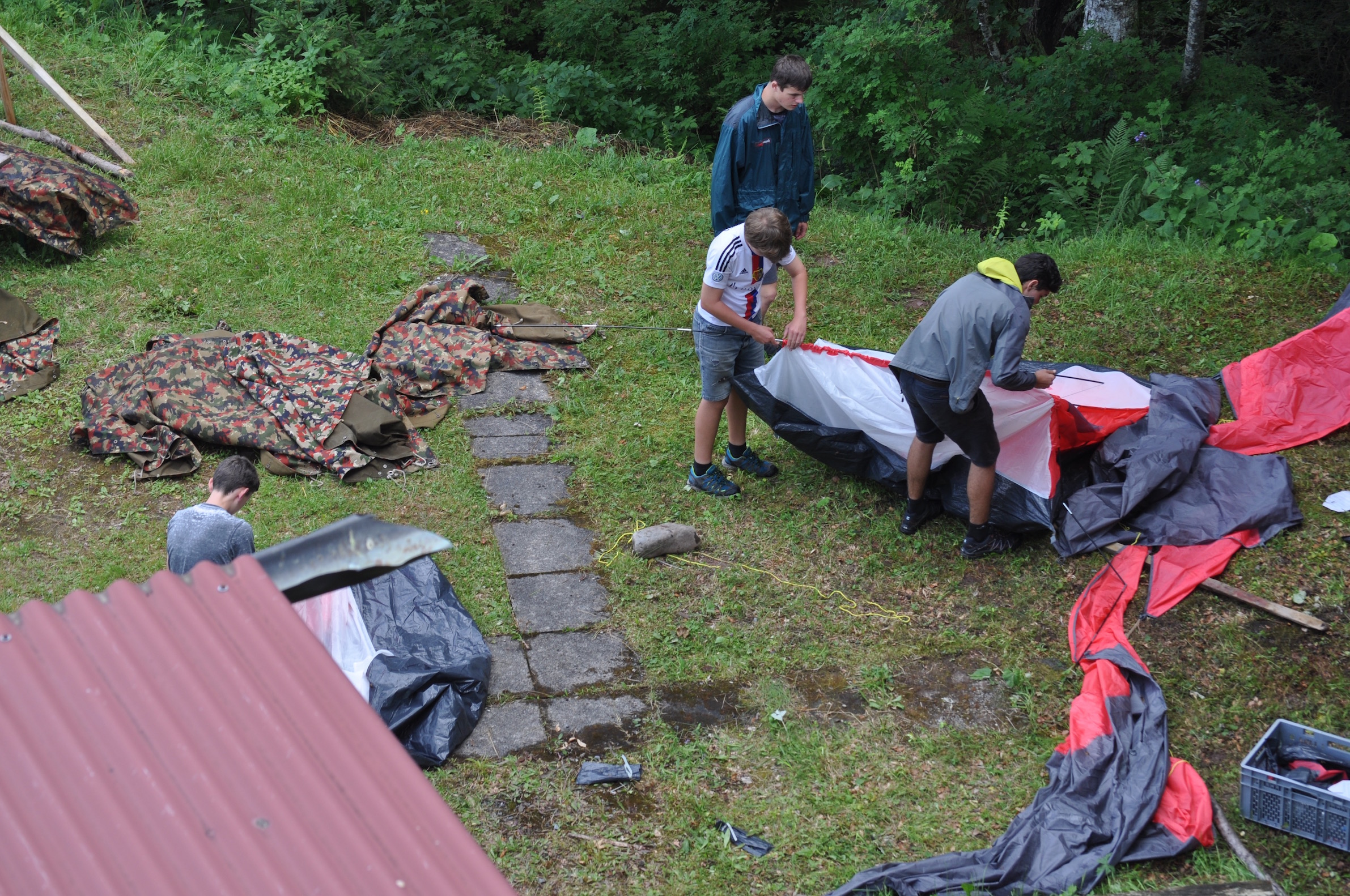 Das Programm vom heutigen Tag war ein wenig angepasst da uns der Wetterbericht gestern Regen voraussagte. Am Nachmittag wurden die Leiter von glücklichen Kindern angeschaut, als ein Hallenbadbesuch angekündigt wurde. Der versprochene, prasselnde Regen traf dann zum Glück auch schon bald ein. Somit konnten wir Leiter uns beruhigen. Wir haben also die Wanderung nicht umsonst verschoben. (: