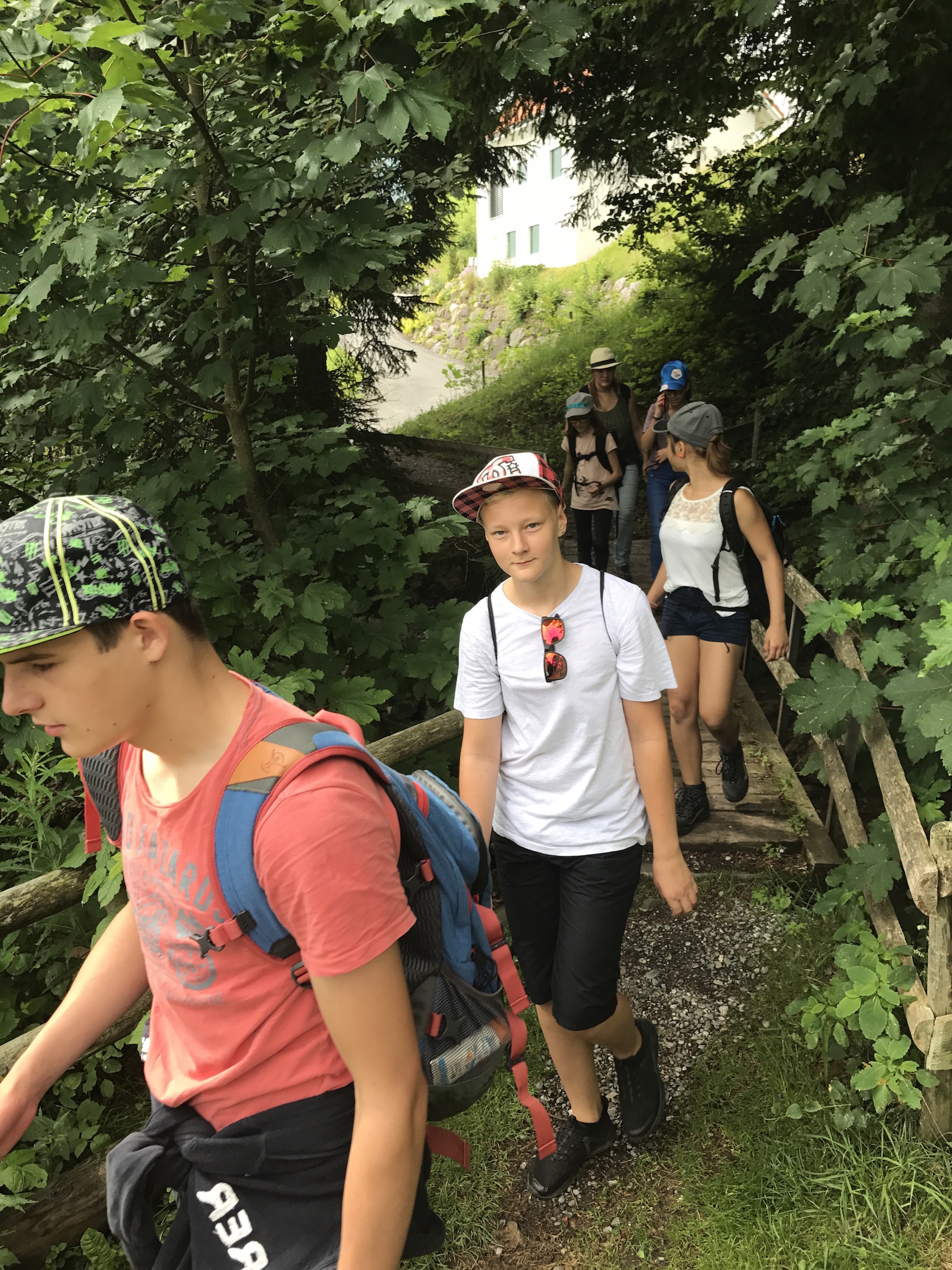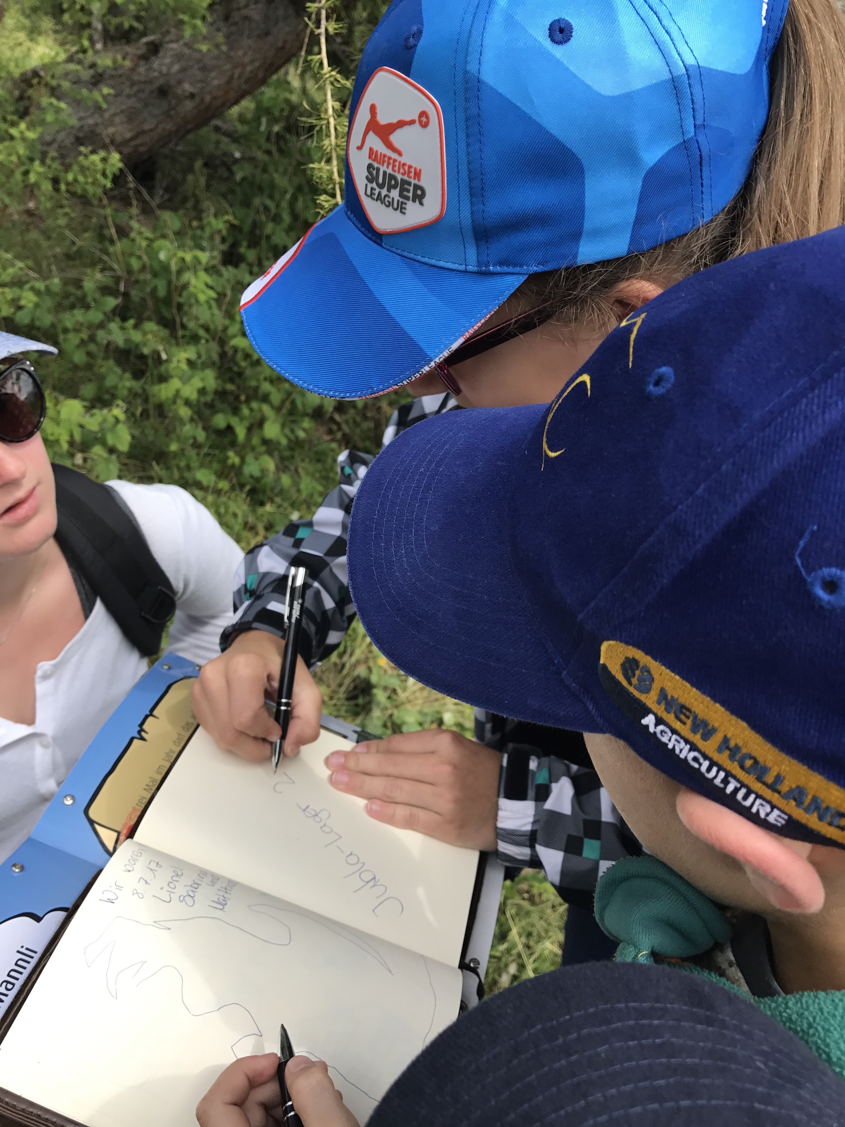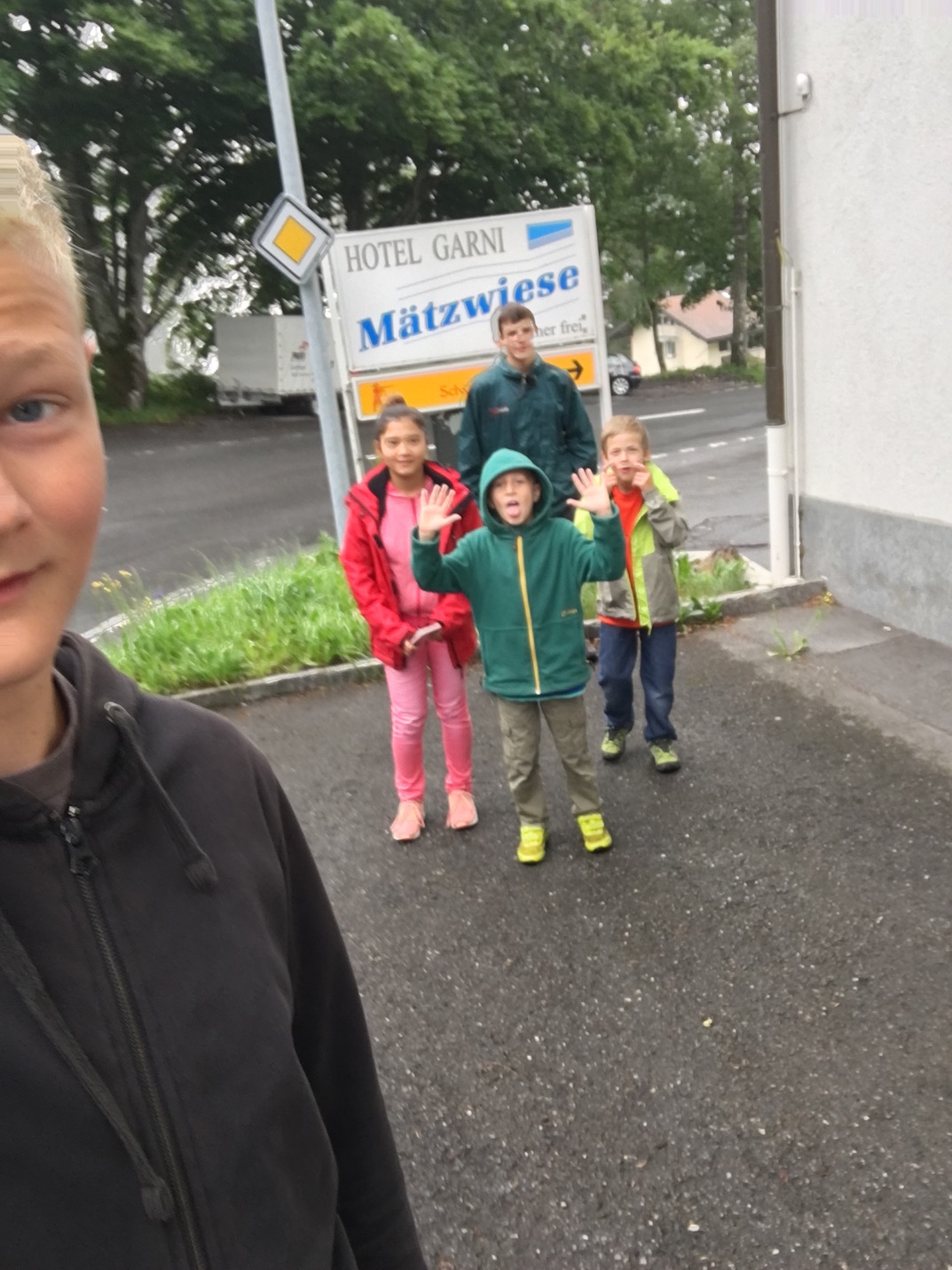 Ziel der Aufgabe war, das die Kids ihre Ortskenntnisse aufbesserten und mit fremden Leuten ins Gespräch kommen, in dem sie verschiedene Hotspots bergauf und -ab fotografisch und mit Videos festhalten mussten. Anständig wie unsere Kids waren, konnten die Aufgaben souverän gelöst werden und mit Freude wurden Selfies mit verschiedenen Leuten gemacht. Als dann auch die letzte Kuh fotografiert war gings wieder den Berg hinauf.