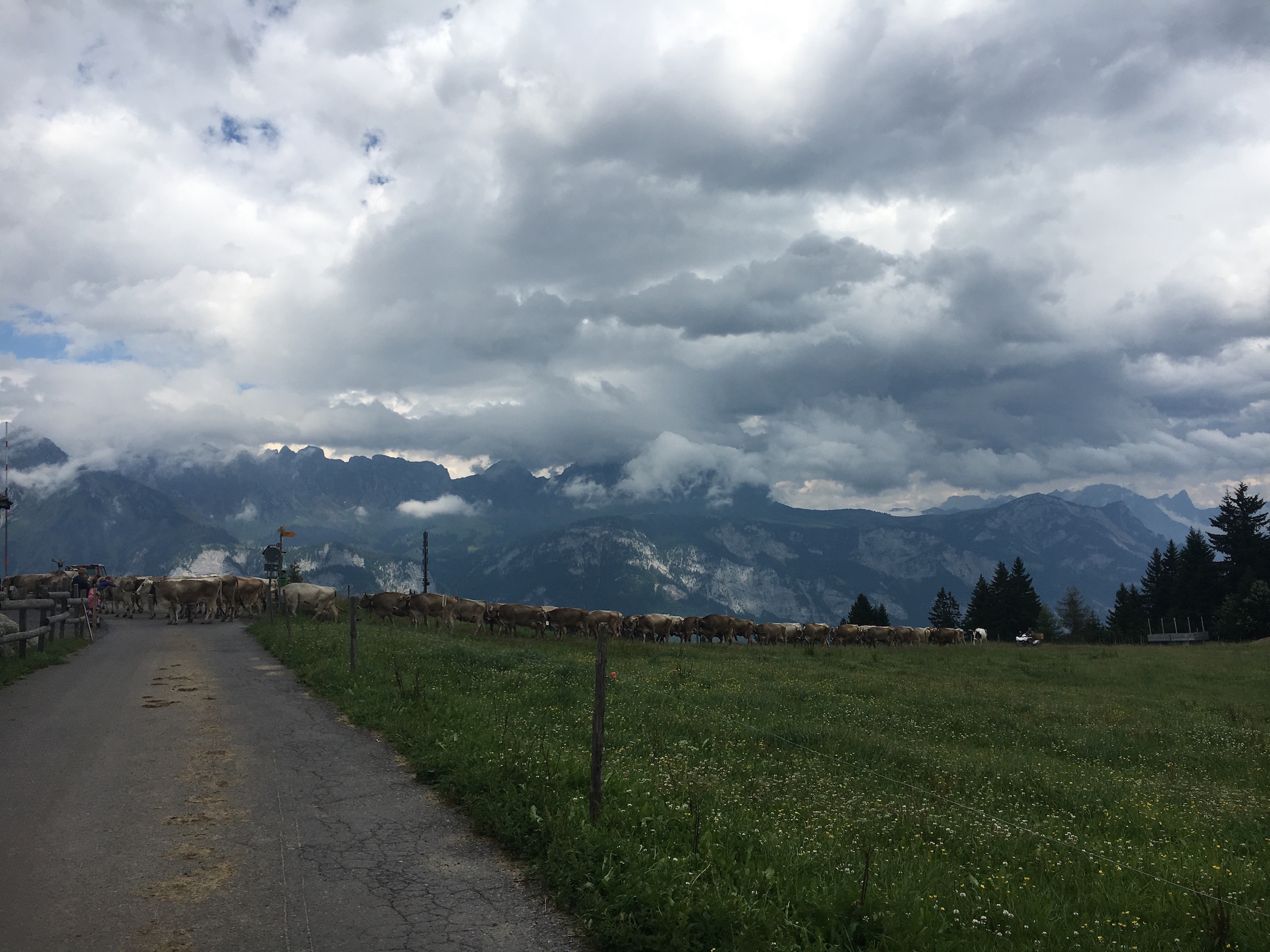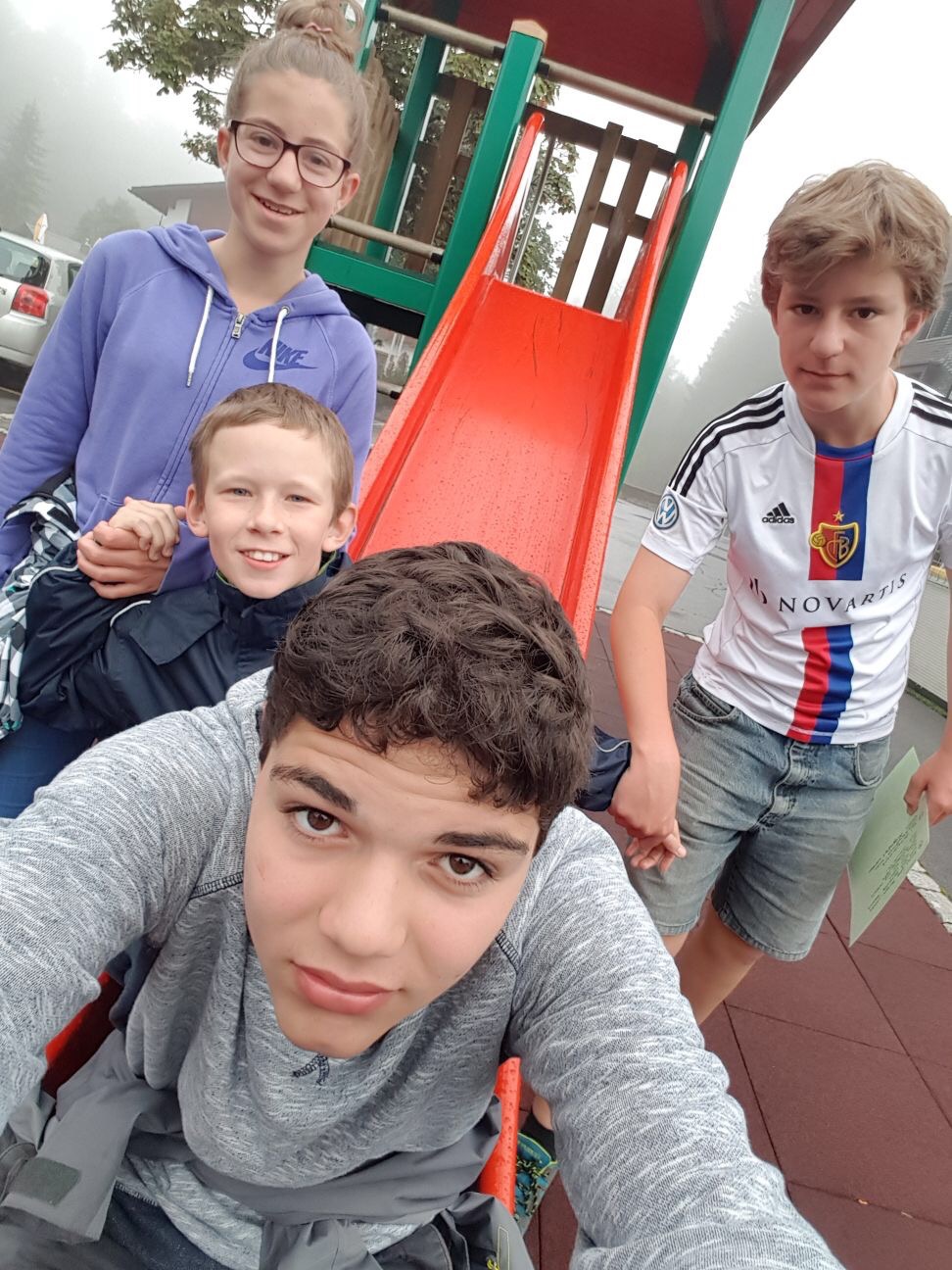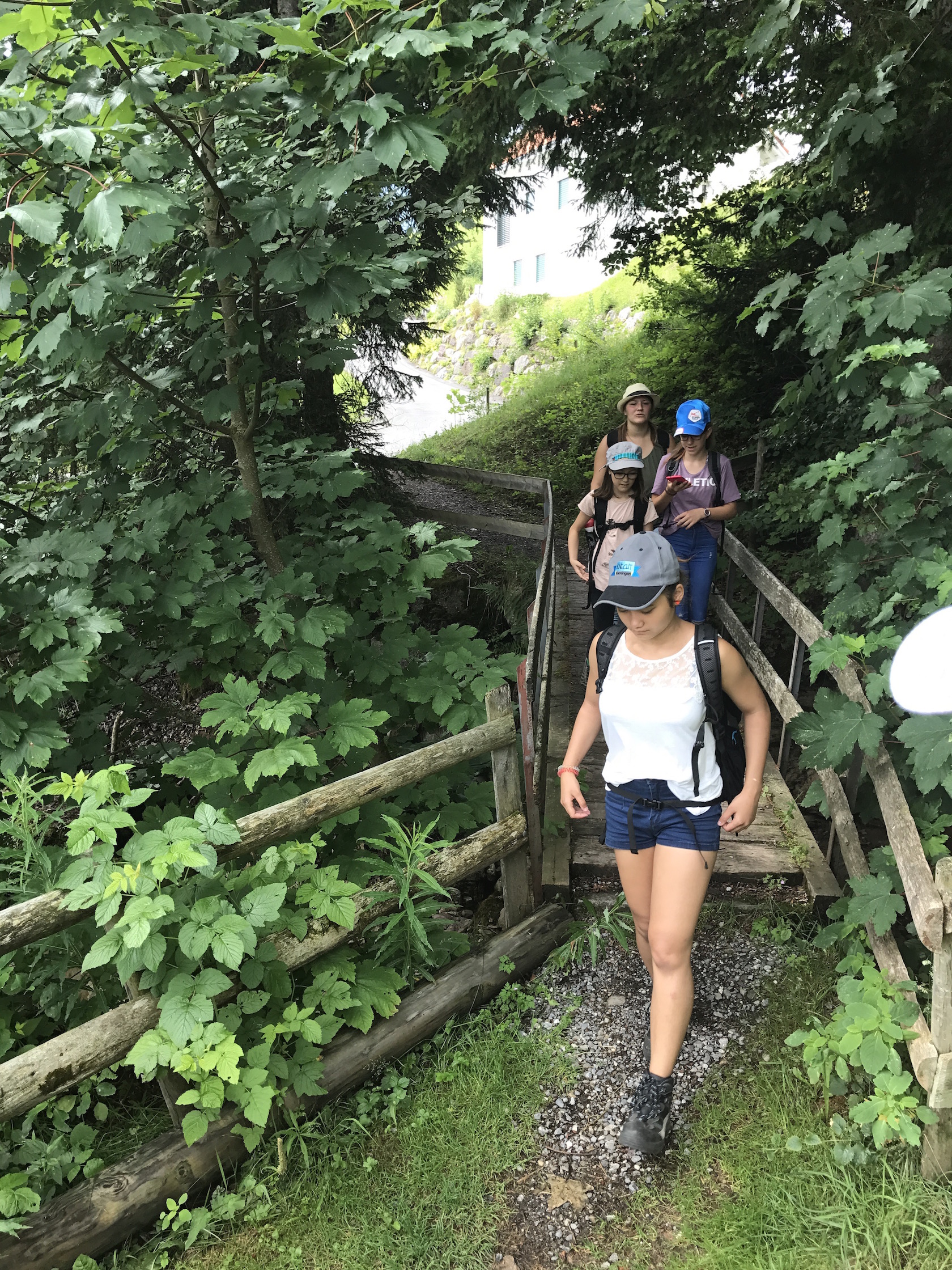 Ziel der Aufgabe war, das die Kids ihre Ortskenntnisse aufbesserten und mit fremden Leuten ins Gespräch kommen, in dem sie verschiedene Hotspots bergauf und -ab fotografisch und mit Videos festhalten mussten. Anständig wie unsere Kids waren, konnten die Aufgaben souverän gelöst werden und mit Freude wurden Selfies mit verschiedenen Leuten gemacht. Als dann auch die letzte Kuh fotografiert war gings wieder den Berg hinauf.
