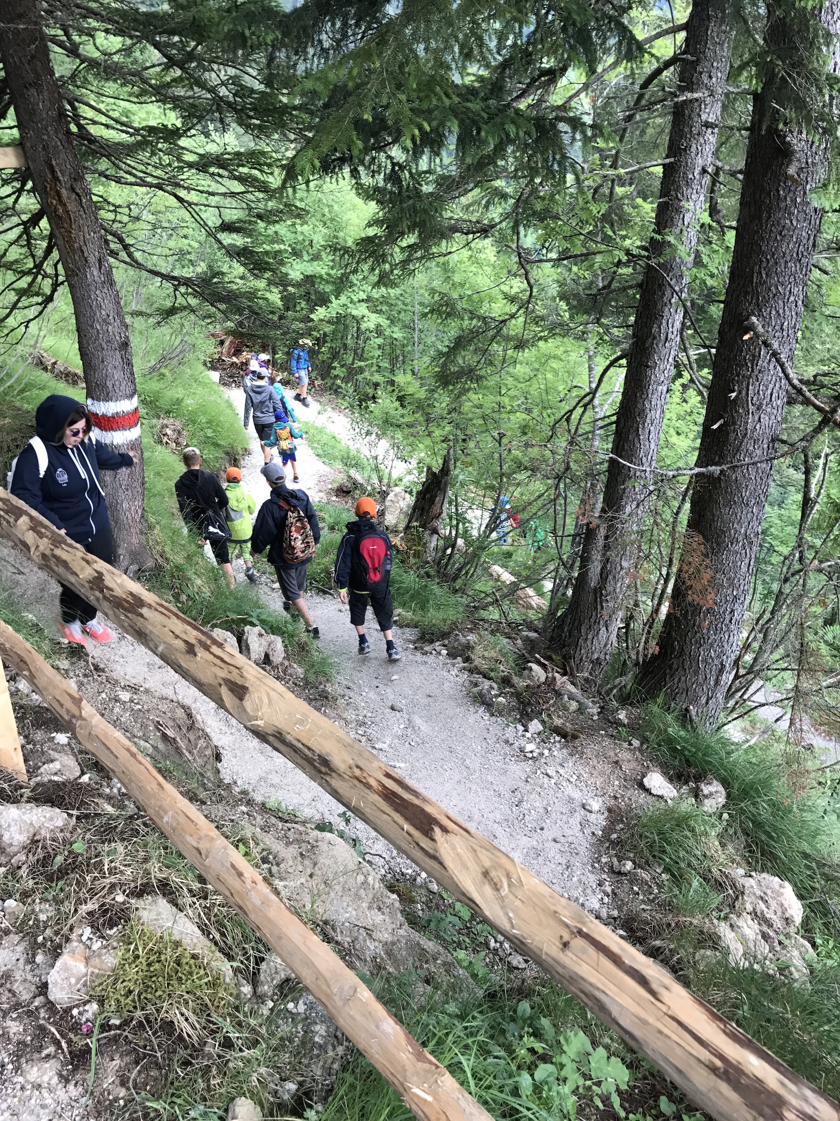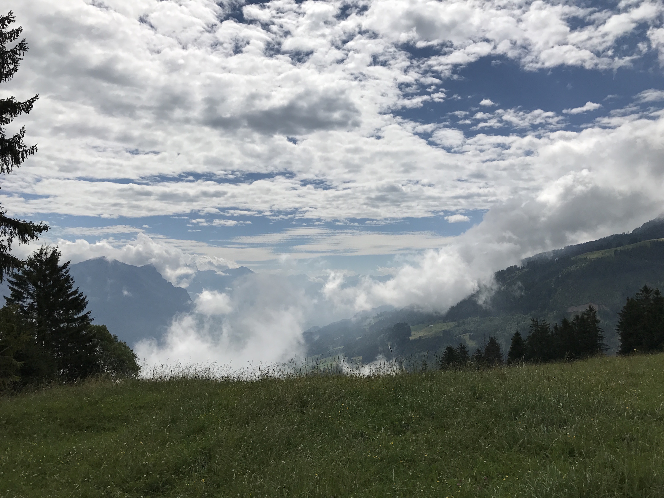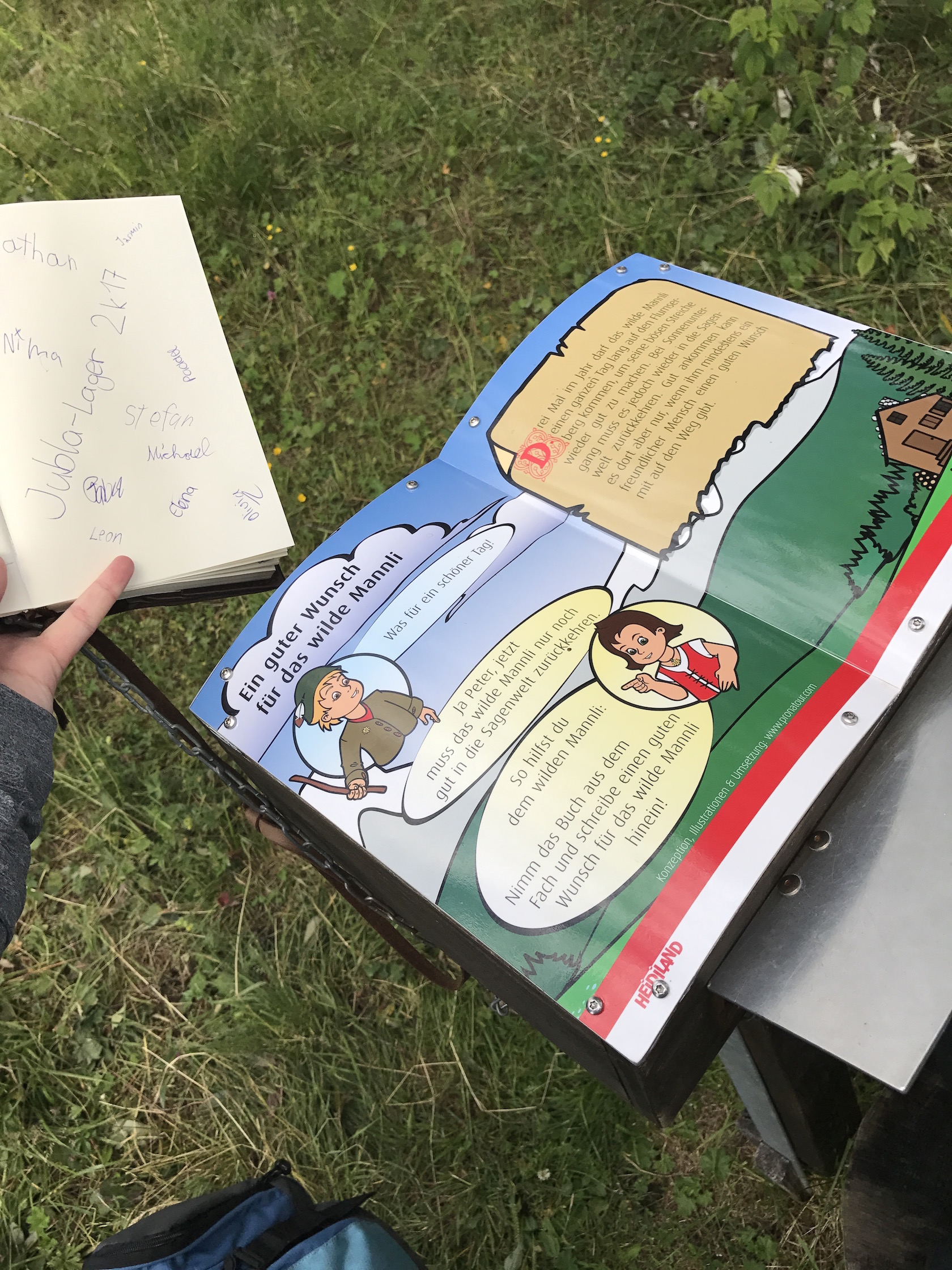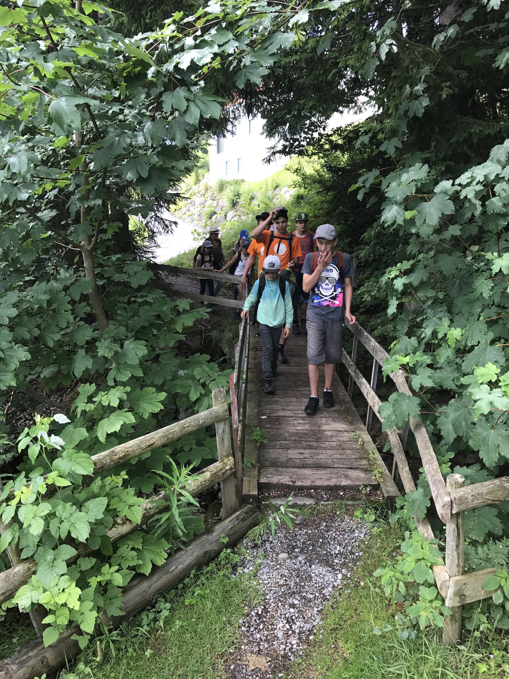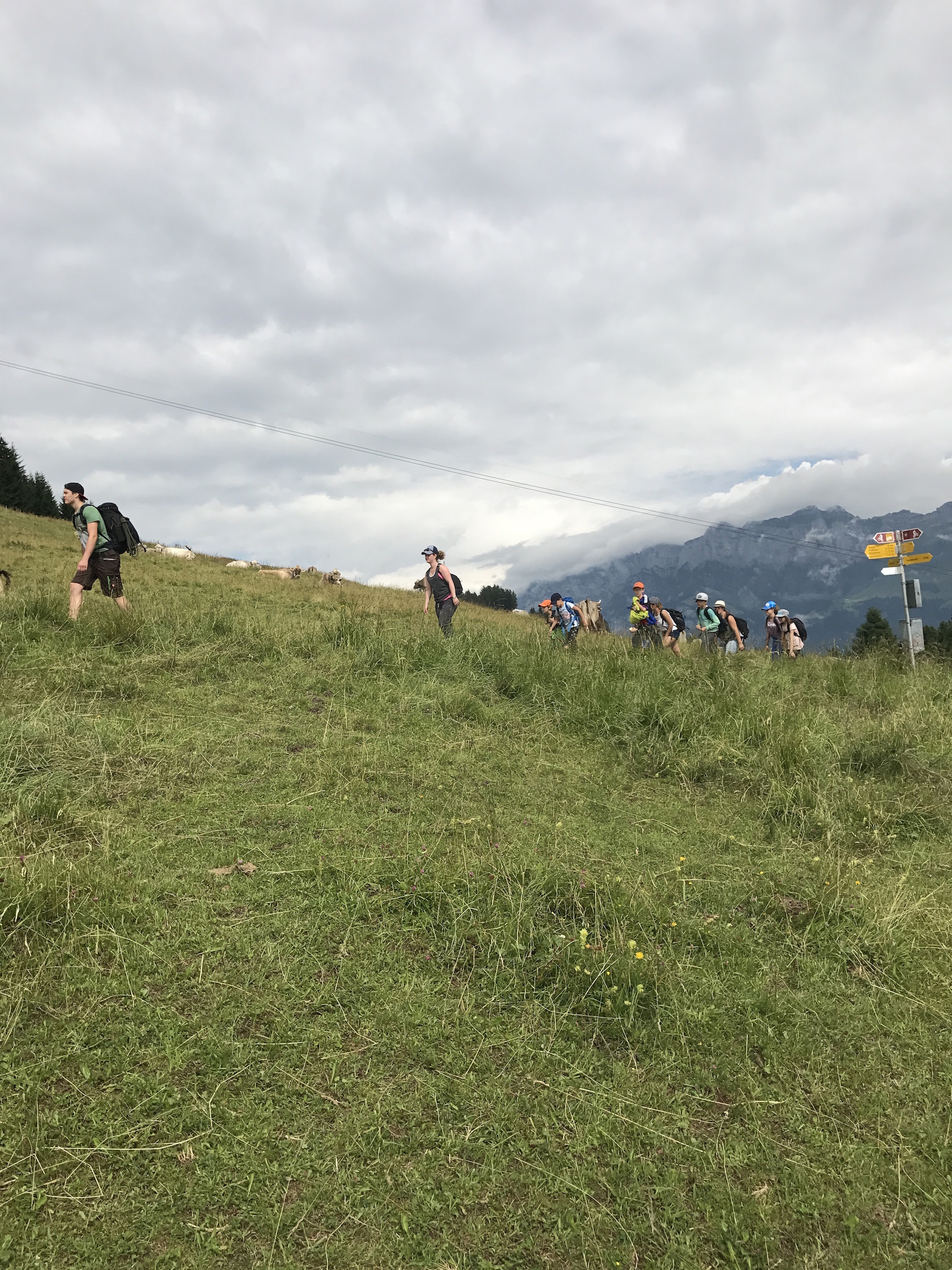 Markus Ulrich Steck war heute als Tageschef für den Weckdienst zuständig. Das Morgenessen noch müde hinter uns gebracht, war schnell Zeit um die Trinkflaschen und Rucksäcke mit Lunch und Regenjacke zu füllen, um zur traditionellen Wanderung aufzubrechen. Motivierte JuBlaner, allesamt mit mehr oder weniger normalen Hüten und Mützen ausgestattet warteten pünktlich vor der Haustüre um loszumarschieren. Schon bald wurde der Start des Aufstieges bei bestem Wanderwetter erreicht. Kühle Temperaturen und Wolken, welche die Sonne verdeckten machten uns die anspruchsvolle Route ein wenig einfacher. Die grossen Jungs brachten den erfahrenen Bergsteiger samt Leiterteam und die restlichen JuBlaner mit ihrem erhöhten Tempo ins schwitzen.
